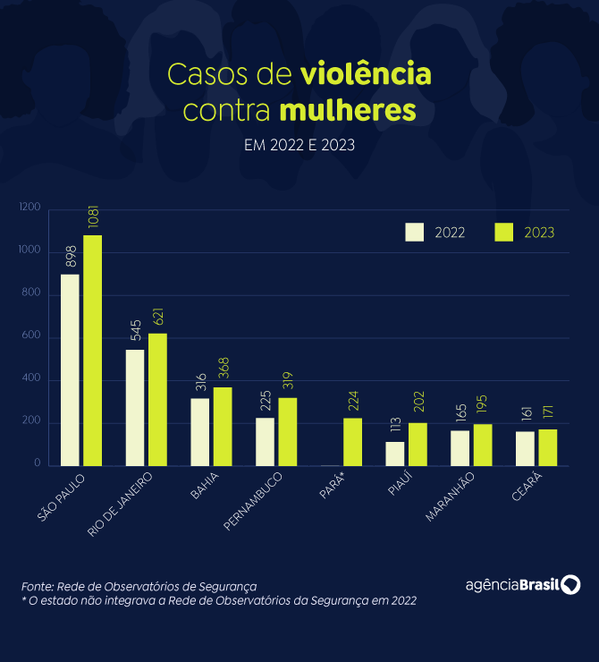 A informação consta do novo boletim Elas Vivem: Liberdade de Ser e Viver, divulgado nesta quinta-feira (7). Ao todo, foram registradas 3.181 mulheres vítimas de violência, representando um aumento de 22,04% em relação a 2022, quando Pará e Amazonas ainda não faziam parte deste monitoramento.