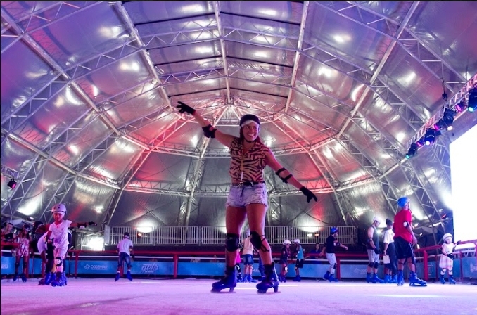 “O gelo é mais difícil porque desliza mais, é mais escorregadio. No patins acho mais fácil. Eu amei a experiência, super voltaria outras vezes. Já sabia mais ou menos como andar e eu percebi que andando com os pés abertos, de lado, eu não ia cair tantas vezes”, explicou Maria Eduarda, que foi ao evento com a mãe, a professora Jéssica Porto e com o pai, o militar Maurício Goulart.