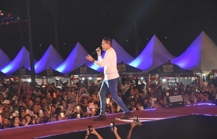 O “rei do piseiro”, o cantor Vitor Fernandes, foi a última atração a subir ao palco do Arraiá de Maricá 2023, montado na Avenida João Saldanha, na Barra de Maricá, encerrando a programação no domingo (23/07). Ao som de “Acaso”, “Vou falar que não quero”, “Perdi Meu Tempo”, “Aí Cê me Liga”, entre outros sucessos, o artista animou o público em sua primeira apresentação na cidade. Organizado pela Prefeitura de Maricá, por meio da Secretaria de Turismo, o tradicional evento julino contou com barracas de comidas típicas, decoração temática e fogueira artificial.