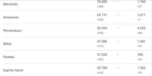 O Brasil teve 748 novas mortes registradas em razão do novo coronavírus em 24 horas, mostra levantamento feito pelo consórcio de veículos de imprensa junto às secretarias estaduais de Saúde. Com isso, são 51.407 mortes pela Covid-19 até segunda-feira (22) no país. Veja os dados, consolidados às 20h: