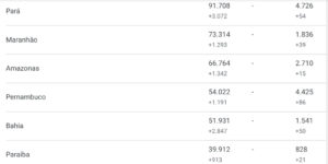 • 1.192.474 casos confirmados; eram 1.151.479 até a noite de terça, ou seja, houve 40.995 novos casos