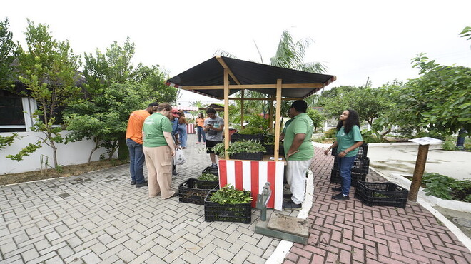 A Prefeitura de Maricá, por meio da Secretaria de Agricultura, Pecuária, Pesca e Abastecimento, promoveu nesta sexta-feira (24/11) um dia de agricultura circular na praça agroecológica de Araçatiba. Durante toda a manhã, técnicos do órgão e do Instituto Cooperar trocaram resíduos orgânicos trazidos pela população por hortaliças colhidas na praça e produtos da fábrica de desidratados, que fica em Ubatiba. Os resíduos foram trocados pelos chamados Baldinhos do Bem. O recolhimento dos resíduos acontece a cada quinze dias e eles são utilizados no plantio na própria praça.
