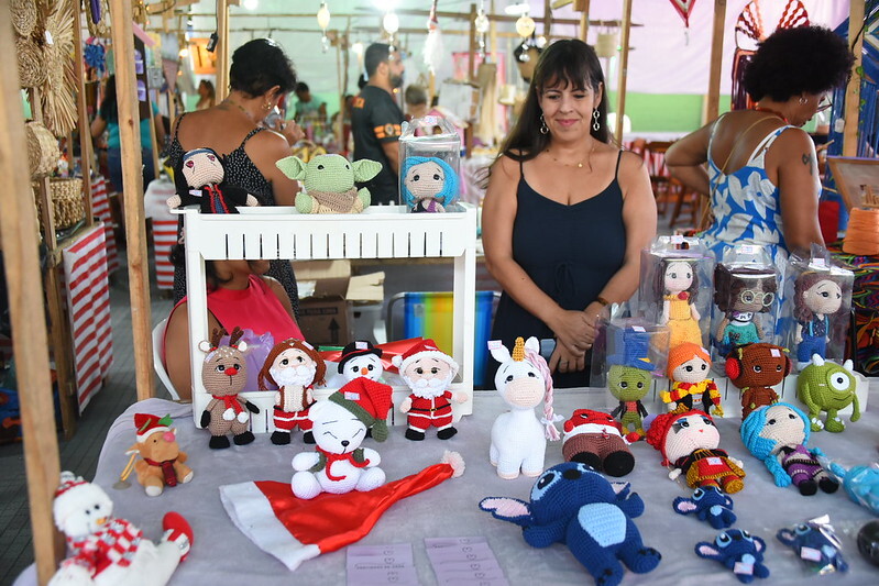 “Crochê sempre foi algo que eu adorava fazer, mas não vendia. Quando eu comecei a fazer amigurumis e os meus amigos começaram a me pedir pra fazer, eu fui descobrindo o novo mundo, fui descobrindo as feiras de artesanato, a gente cria laços, conhece pessoas. Eu me divirto nas feiras, eu adoro vir pra cá e ainda faço uma renda extra”, falou Alice Oliveira, dona da marca Pontinhos de Amor – Amigurumis.