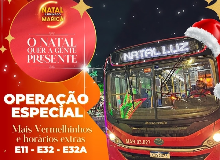 Além disso, das 18h às 22h30, a EPT disponibilizará dois vermelhinhos extras, com a vista eletrônica “Natal Iluminado” fazendo o percurso Recanto x Terminal de Itaipuaçu, com saídas a cada 30 minutos, em ambos os sentidos.