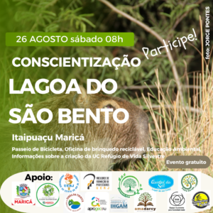 No dia 26 de agosto 2023, sábado, às 08h, vamos fazer uma ação de divulgação de todas as informações ligadas a preservação da LAGOA DO SÃO BENTO – ITAIPUAÇU, visando a conscientização dos moradores sobre todo o processo de transformação dessa área em UNIDADE DE CONSERVAÇÃO REFÚGIO DE VIDA SILVESTRE!