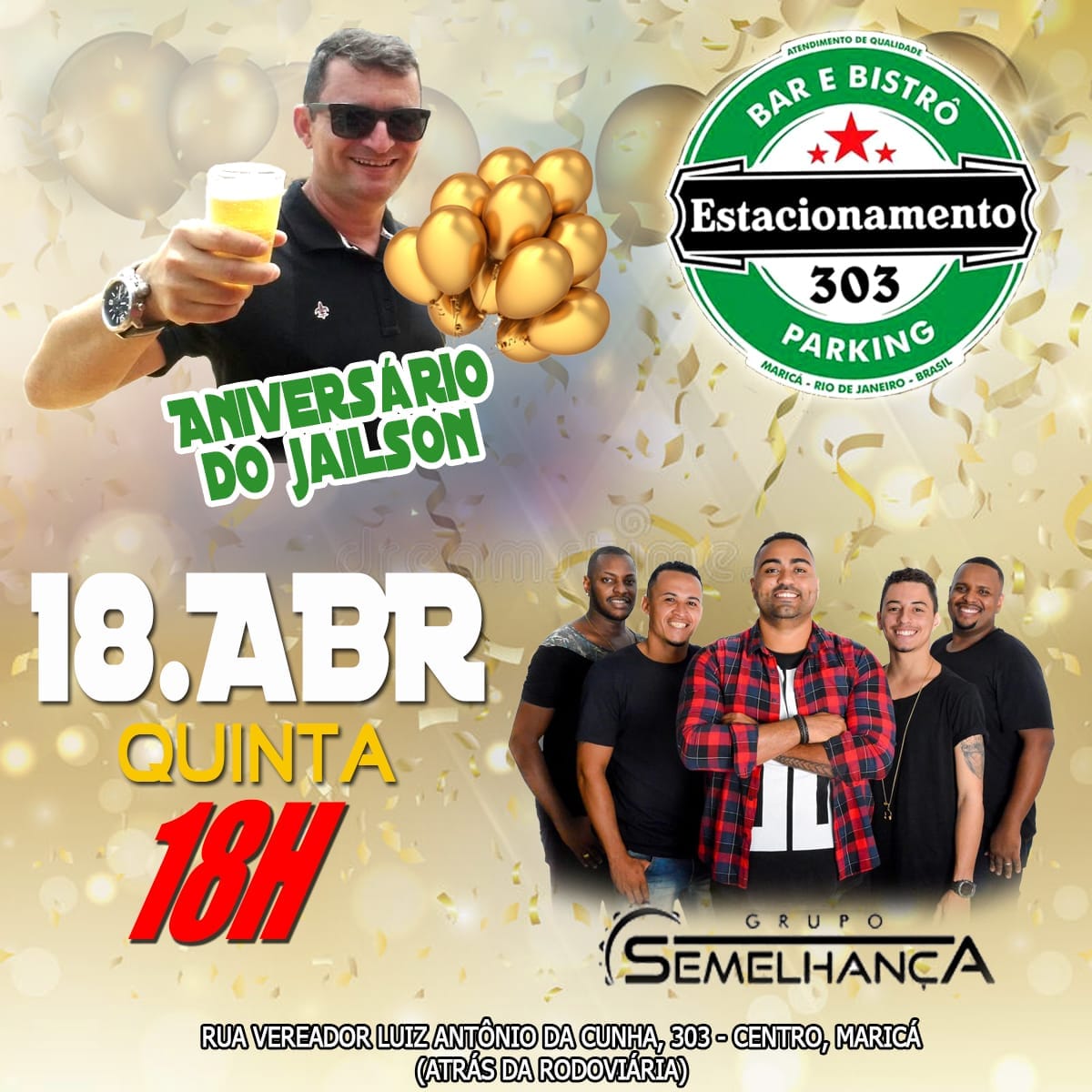 O Grupo Semelhança se apresenta no bar Bistrô Estacionamento 303, a partir das 18 hs. E, como você sabe, só samba de raiz! Alem disso, em um ambiente pra curtir sem exigir muito. O Bar e Estacionamento 303 Parking fica na Rua Vereador Luiz Antônio da Cunha, 303 – Centro (atrás da Rodoviária Jacintho Luiz Caetano) Informações: 96438-2834.