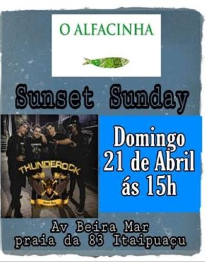 O Restaurante O Alfacinha brinda Itaipuaçu com a apresentação de uma banda muito boa que anima a tarde até o por do sol: Thunderock! De fato, a banda tem como não deixar o rock morrer e como referências o Blues, Rockabilly e clássicos do rock, além de outros estilos. Então, venha assistir a melhor show de rock, comemorando a beleza única do por do Sol no já conhecido Sunset Sunday no O Alfacinha. O Alfacinha fica na Avenida Beira Mar, esquina com a Rua 104 n/1, na Ponta do Francês, Itaipuaçu. Telefone: (21) 98093-1010
