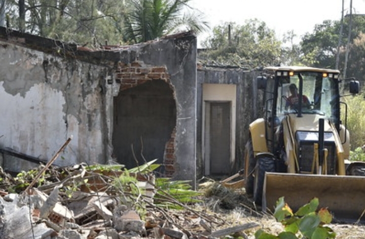 Gated derruba construção irregular abandonada na Barra de Maricá