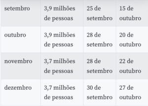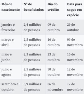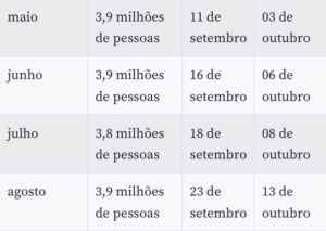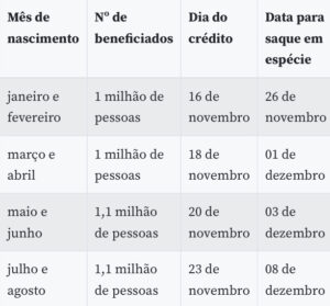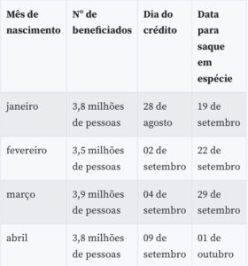 Como nas últimas parcelas, o dia de depósito na poupança digital (que permite pagamentos de boletos, compras com cartão de débito virtual e pagamento com código QR em estabelecimentos parceiros) e de saque será definido de acordo com o mês de nascimento. Os ciclos 3 e 4 serão destinados ao pagamento de lotes residuais para quem teve o benefício liberado mais tarde pela Dataprev, estatal de tecnologia encarregada de analisar os pedidos.