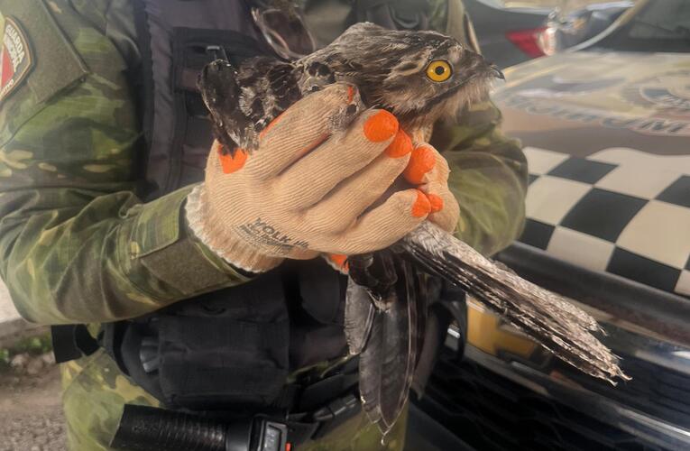 📍 Bambuí – Um urutau foi encontrado dentro de uma residência, debilitado e com ferimentos em uma das asas. Após o resgate, a ave foi encaminhada para avaliação e cuidados da Secretaria de Meio Ambiente e Sustentabilidade.