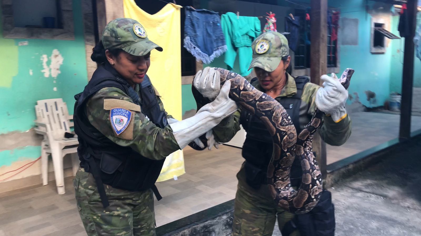 Guarda Municipal de Maricá resgata jiboia em residência