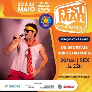 A Prefeitura de Maricá promove, de sexta-feira (20/05) a domingo (22/05), o III Festival de Maricá (FestMar) na orla de Araçatiba, com exposição de carros antigos, shows, feira de artesanato e gastronomia. O evento é organizado pela Companhia de Desenvolvimento de Maricá (Codemar), em parceria com as secretarias de Turismo e de Promoção e Projetos Especiais, e marca o início das comemorações dos 208 anos de Maricá, celebrado no dia 26/05.