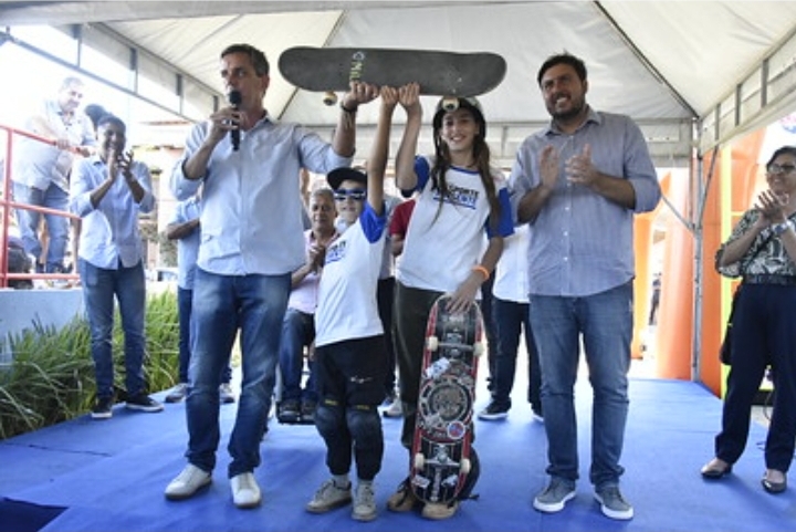 A cerimônia reuniu gestores do município, além de crianças e adolescentes alunos de skate do projeto do Maricá Esporte Presente. Para Pedro Magalhães, de 8 anos, o local irá privilegiar o esporte na região.