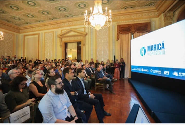 O secretário de Desenvolvimento Econômico de Maricá, Igor Sardinha, apresentou os investimentos na cadeia produtiva do hidrogênio, destacando a Lei Municipal de Uso do Hidrogênio e o projeto dos ônibus sustentáveis que está sendo desenvolvido em parceria com a Coppe/UFRJ. O estudo da tecnologia faz parte dos planos do município para descarbonizar totalmente a frota de coletivos da cidade até 2038.