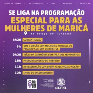 No dia 8 de março, a partir das 9h, às atividades acontecem na Praça Conselheiro Macedo Soares, no Centro, com distribuição de panfletos educativos e atividades culturais, voz e violão com mulheres artistas do projeto Cultura de Direitos, apresentação da cantora Dalva Alves e banda. O evento também terá participação do prefeito Fabiano Horta.