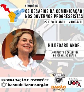 Antes de mais nada, estão definidos os participantes do Seminário de Comunicação “Os desafios da Comunicação nos Governos Progressistas”. De fato o seminário  vai acontecer em Maricá nos dias 27 e 28 de abril. Desse modo, entre os debatedores estão o prefeito Fabiano Horta; bem como o jornalista e ex-ministro da Secretaria de Comunicação da Presidência da República, Franklin Martins. Além disso, também estará o escritor, jornalista e editor do blog Nocaute, Fernando Morais.