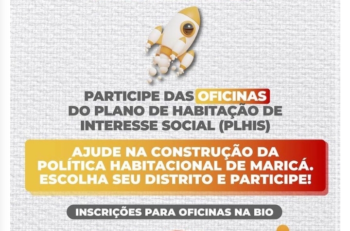 A Prefeitura de Maricá, por meio da Secretaria de Habitação e Assentamentos Humanos, está com novas datas para inscrição nas oficinas de construção do Plano de Habitação de Interesse Social, que acontece entre os dias 6 e 9 de março nos quatro distritos. As ações que aconteceriam de 7 a 10 de fevereiro precisaram ser adiadas por causa das fortes chuvas que atingiram o município no início deste mês.