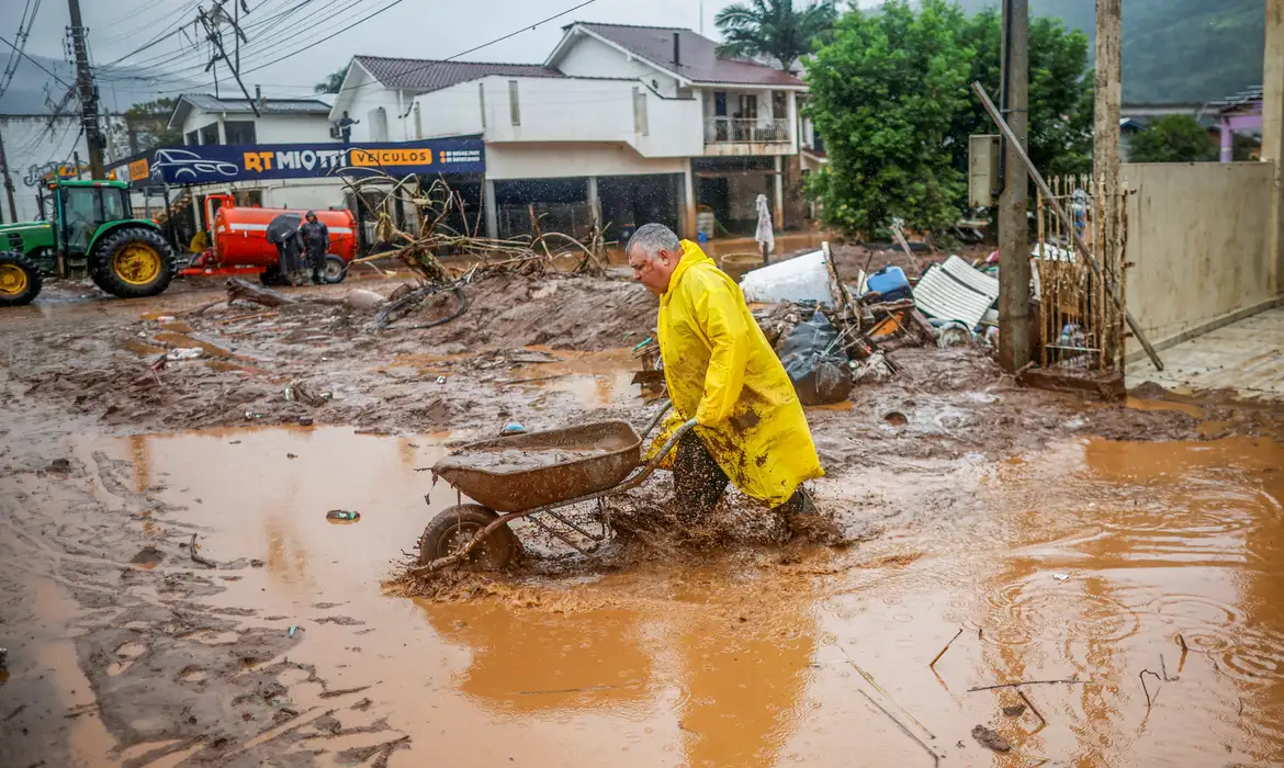 O professor Paiva explicou à Agência Brasil/M1NewsTV que, no primeiro momento, houve cheias bem rápidas nos rios da serra, onde existem vales mais encaixados em que os volumes de água correm rapidamente e os rios se elevam com rapidez e grande amplitude. “Há casos de 20 metros de elevação em menos de um dia. Isso causou muita destruição, por exemplo, no Vale do Taquari, de novo”. Essa região sofreu grandes enchentes em setembro de 2023.
