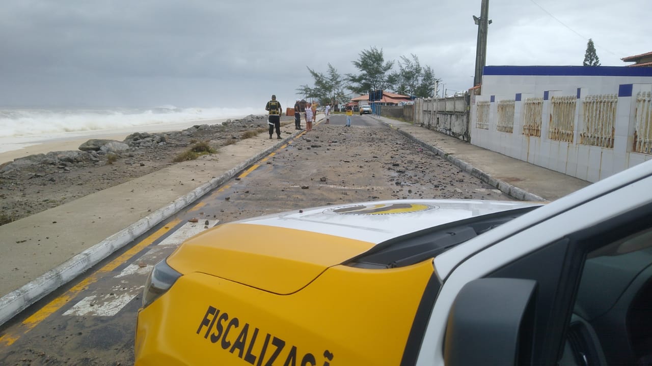 Na Barra de Maricá, o trecho da orla entre as ruas 9 e 13 foi interditado pela Sectran devido às ondas do mar chegarem até a pista. A via vai permanecer interditada até que haja condições seguras de tráfego. Agentes da Defesa Civil também sinalizaram toda a extensão da orla com bandeiras vermelhas, alertando sobre o risco, que devem ser respeitadas.