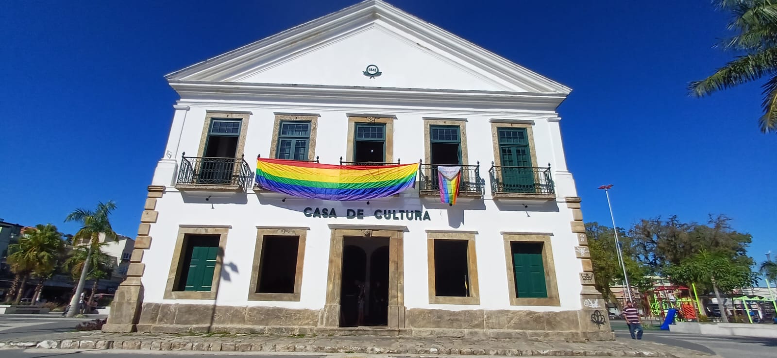 Em evento na Casa de Cultura, importante prédio histórico da cidade, foi erguida a bandeira com as cores do arco-íris