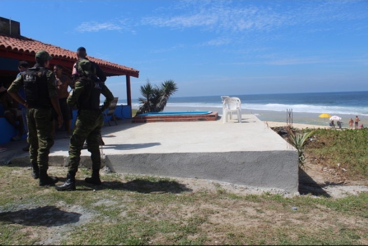 A Prefeitura de Maricá, por meio do Grupo de Apoio Técnico Especializado em Demolições (Gated), embargou na sexta-feira (14/04) uma obra em área ambiental na Rua 82, em Cordeirinho. O quiosque, durante a obra de expansão, avançou sobre a faixa de areia da praia e vegetação com a implementação de uma piscina. O responsável tem prazo de 48 horas para realizar a demolição da área irregular.