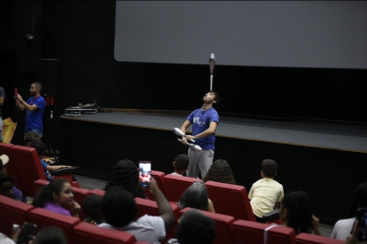 A Prefeitura de Maricá, por meio da Secretaria de Cultura, apresentou na sexta-feira (21/07) no Cine Henfil, no Centro, a primeira edição especial da Caravana da Cultura de 2023 nas férias. O evento acontece todas as sextas e sábados, uma hora antes da sessão infantil. A iniciativa, que integra o programa Maricá das Artes, foi criada em parceria com as secretarias de Cultura e de Educação para levar apresentações artísticas às escolas do município com uso de diferentes linguagens (músicas, brincadeiras, contação de histórias) para entreter e ensinar crianças de forma lúdica e divertida. O projeto Caravana da Cultura é gerenciado pelo IPCEP.
