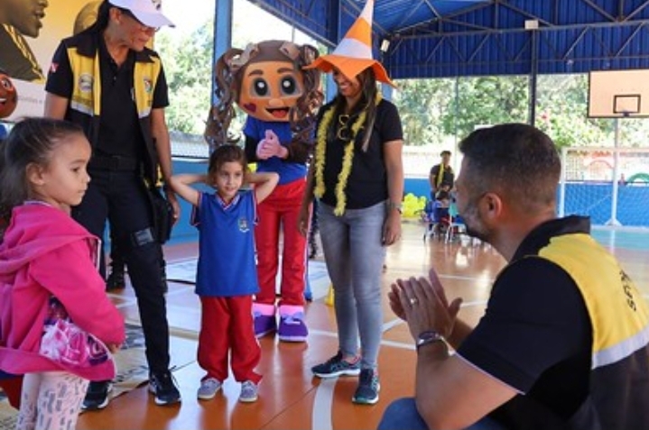 A Prefeitura de Maricá, por meio da Secretaria de Trânsito e Engenharia Viária (Sectran), iniciou na terça-feira (23/05) uma ação educativa da campanha “Maio Amarelo”, na Escola Municipal Dilza de Sá Rego, em Jaconé. Cerca de 200 crianças, com idades entre quatro e dez anos, participaram da atividade, que contou com apresentação dos personagens “Amigos do trânsito”.