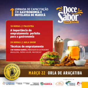 Oficinas, palestras e mini-cursos serão oferecidos gratuitamente no Espaço Gourmet Doce Sabor, na Orla de Araçatiba, de 21 de março a 23 de abril
