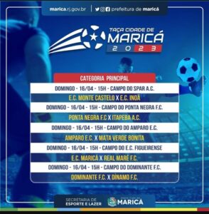 Todos os jogos acontecem a partir das 15h deste domingo (16/04). No Campo do Ponta Negra F.C, a equipe do Ponta Negra enfrenta o Itapeba. O campo do Spar, em Inoã, recebe a partida entre Monte Castelo e Inoã. Já o E.C Maricá recebe o Real Maré no campo do Figueirense, no Caxito; o Amparo enfrenta o Mata Verde Bonita no campo do Amparo, em Itapeba. Por fim, a equipe do Dominante enfrenta o Dínamo, em Araçatiba.