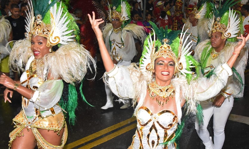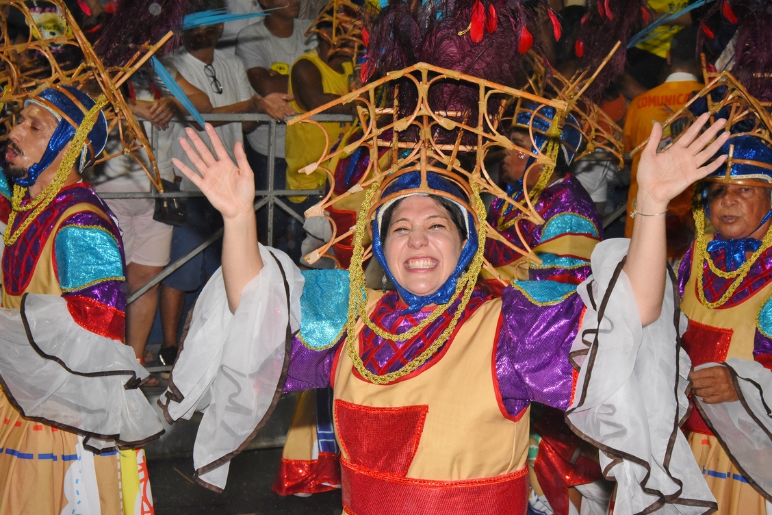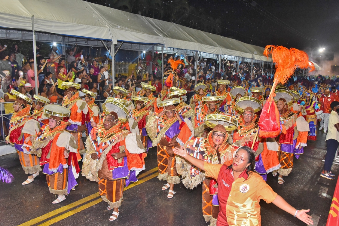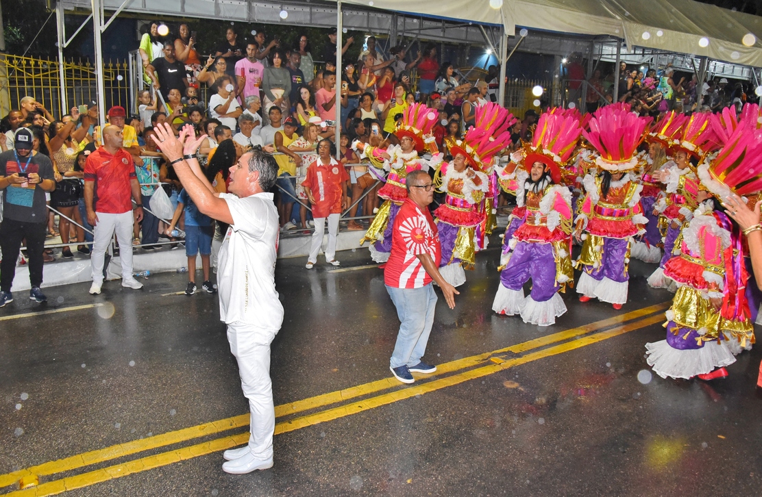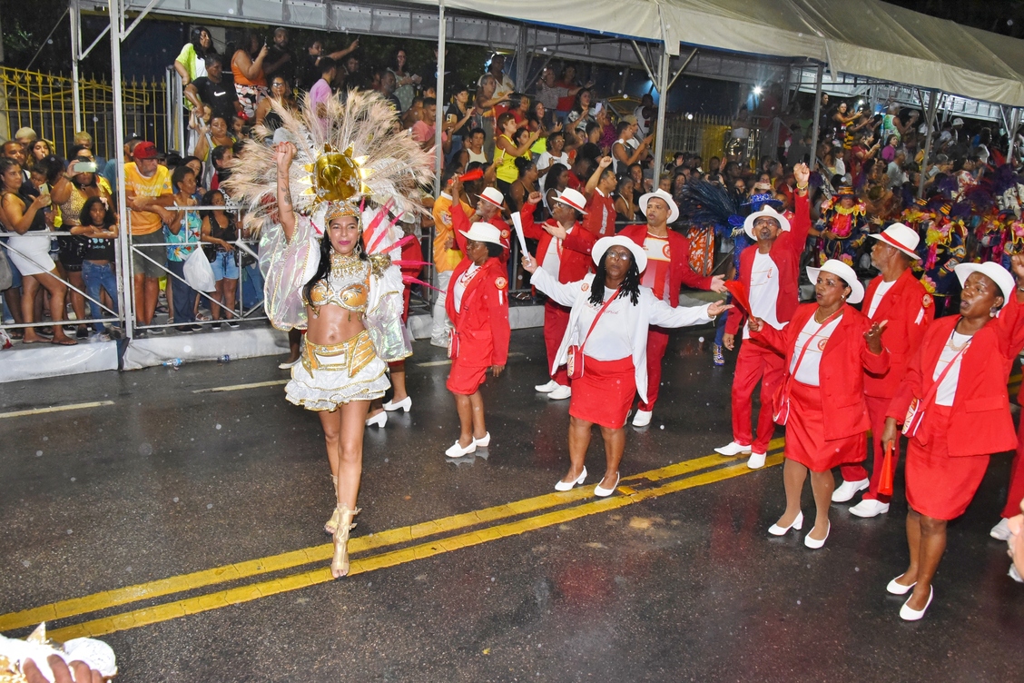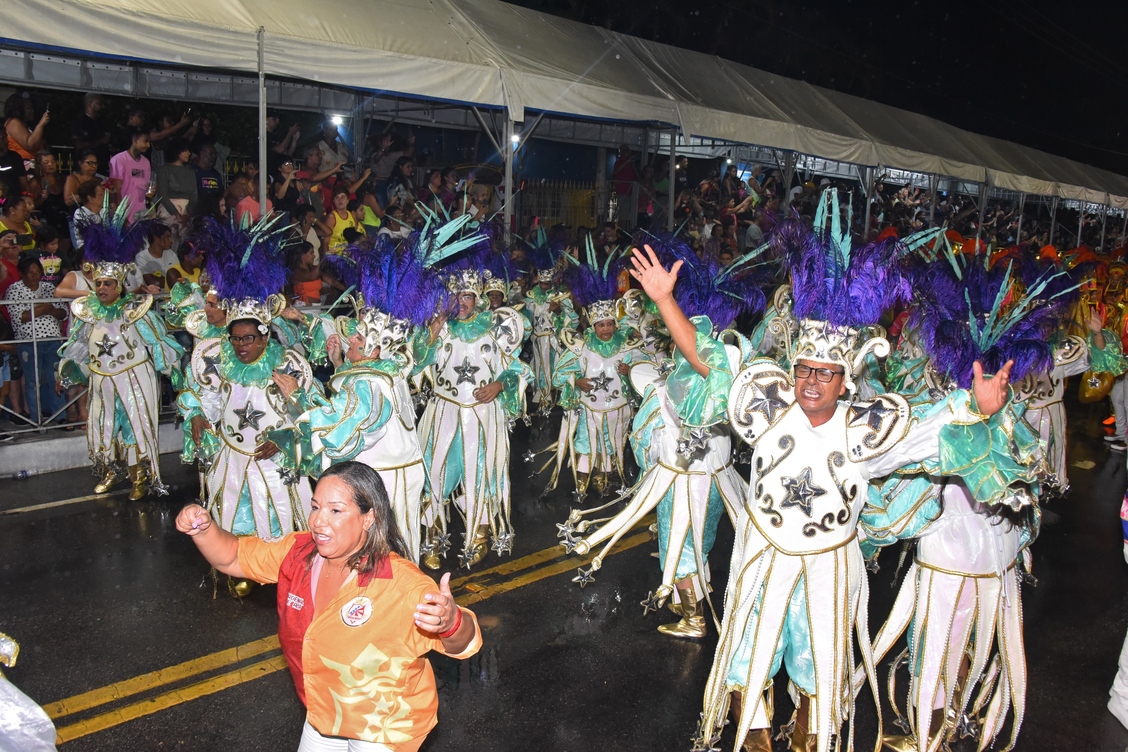 Com muita alegria e enredo na ponta da língua, Maria Eduarda, de 15 anos, se encantou com as fantasias. “Que lindas fantasias, bastante brilho e muita alegria. Nem essa chuva me atrapalhou de estar aqui assistindo o último desfile da minha cidade!”, disse a moradora do centro.